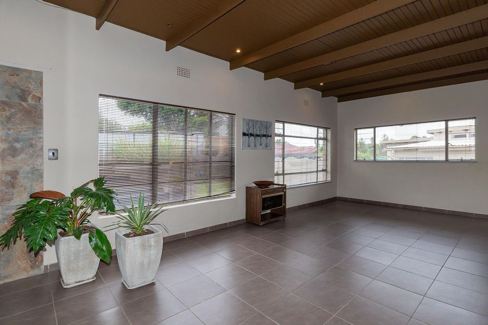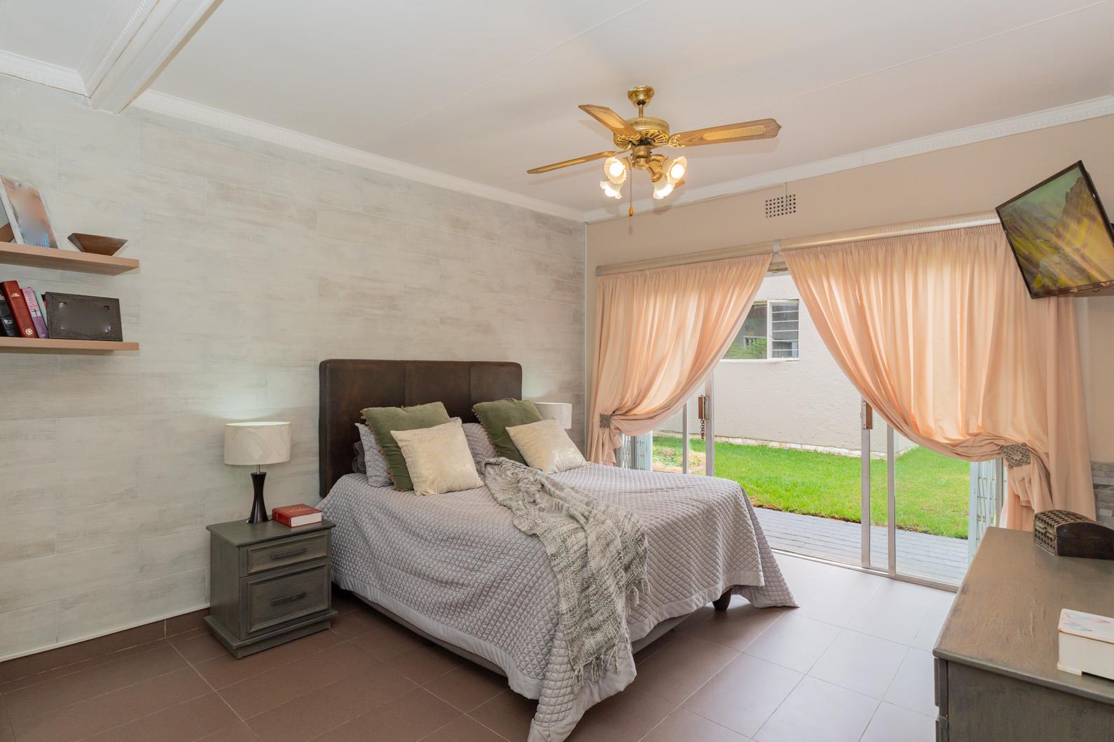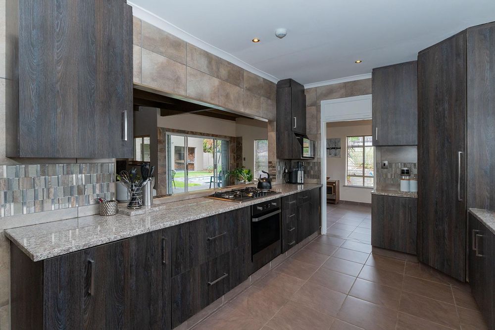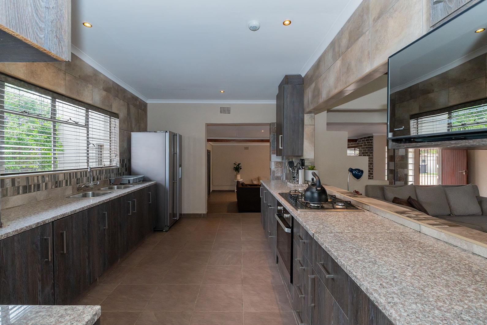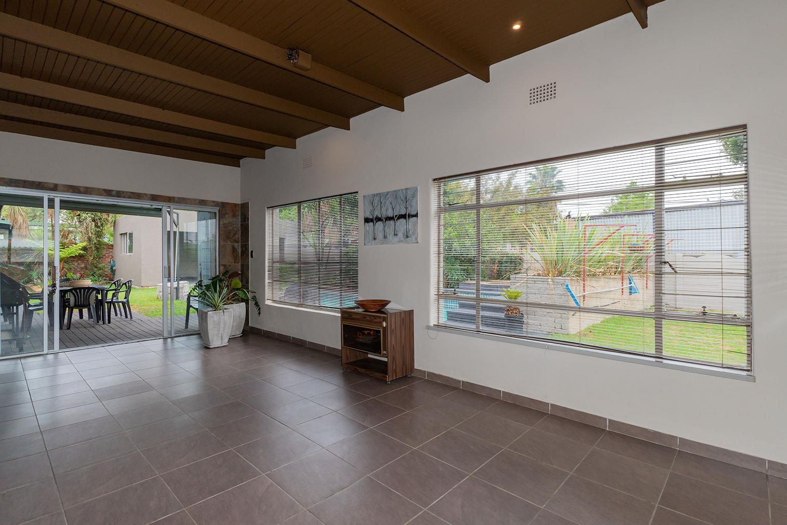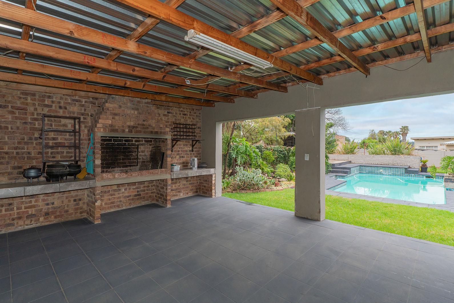 The outdoor area is designed for year-round enjoyment, featuring a sleek pool, deck, and covered patio. A dedicated braai room with a built-in braai and social area makes it easy to entertain friends and family, all while enjoying views of the pool and landscaped garden.