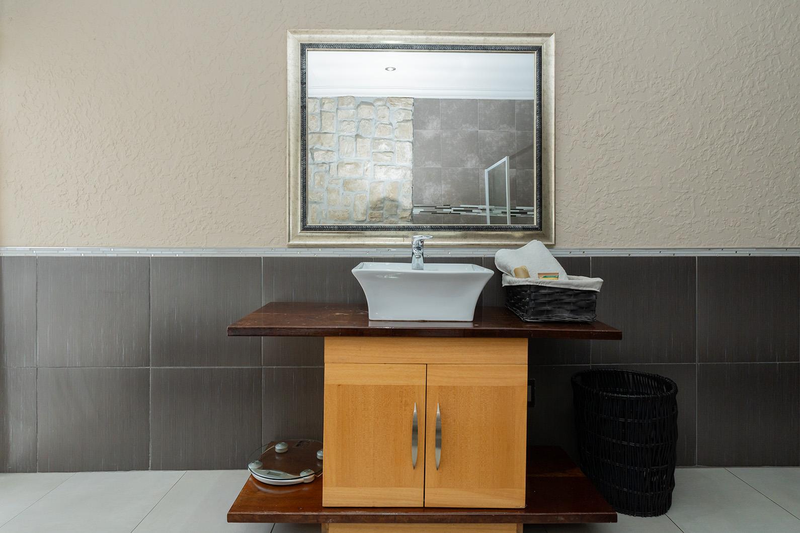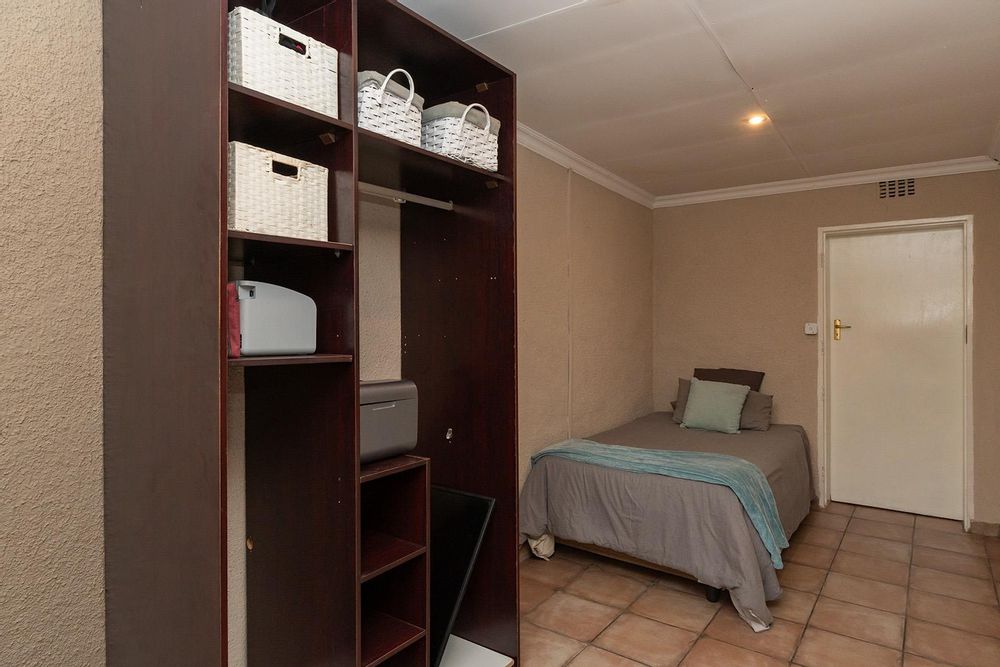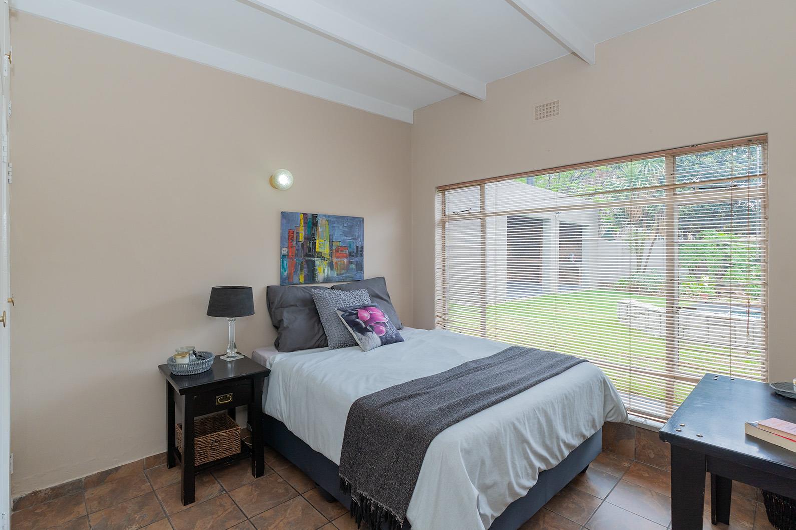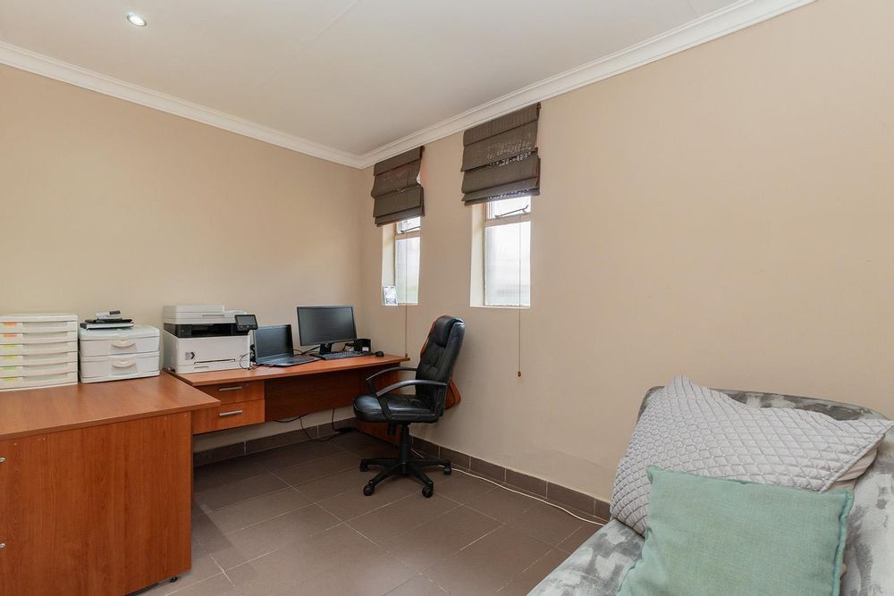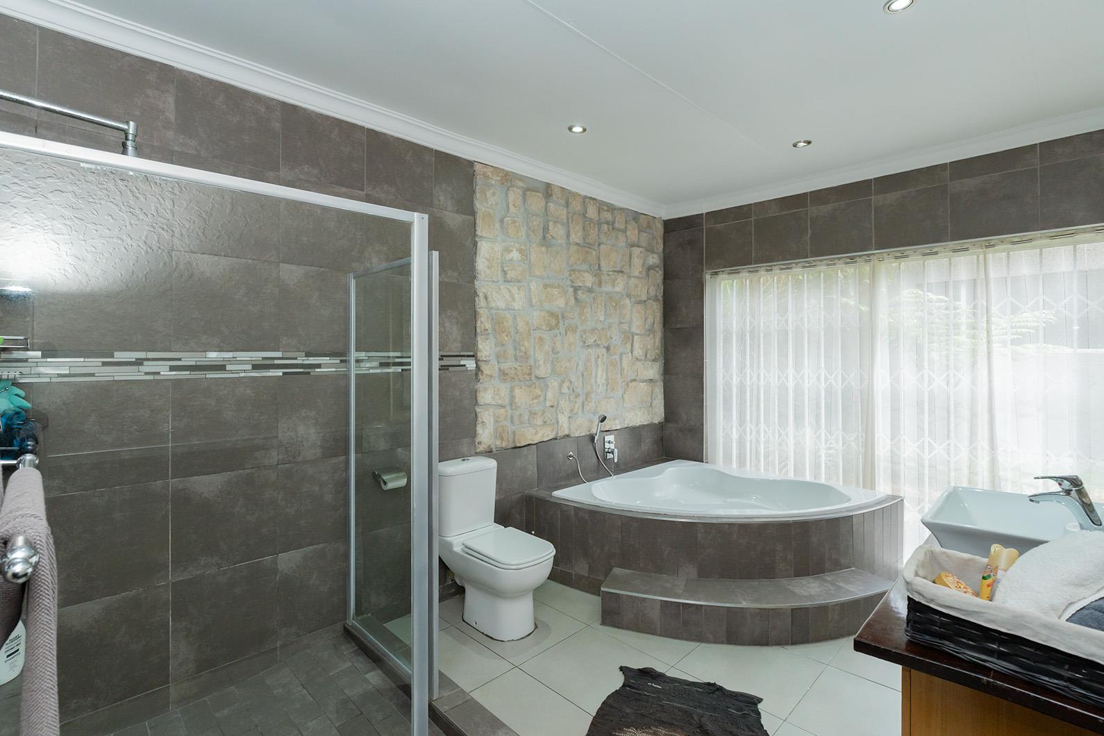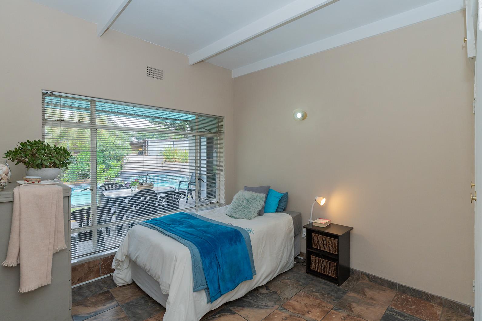 The outdoor area is designed for year-round enjoyment, featuring a sleek pool, deck, and covered patio. A dedicated braai room with a built-in braai and social area makes it easy to entertain friends and family, all while enjoying views of the pool and landscaped garden.