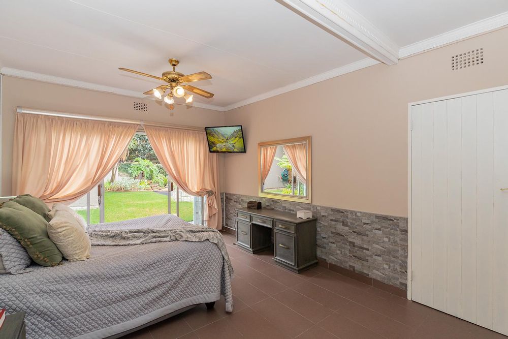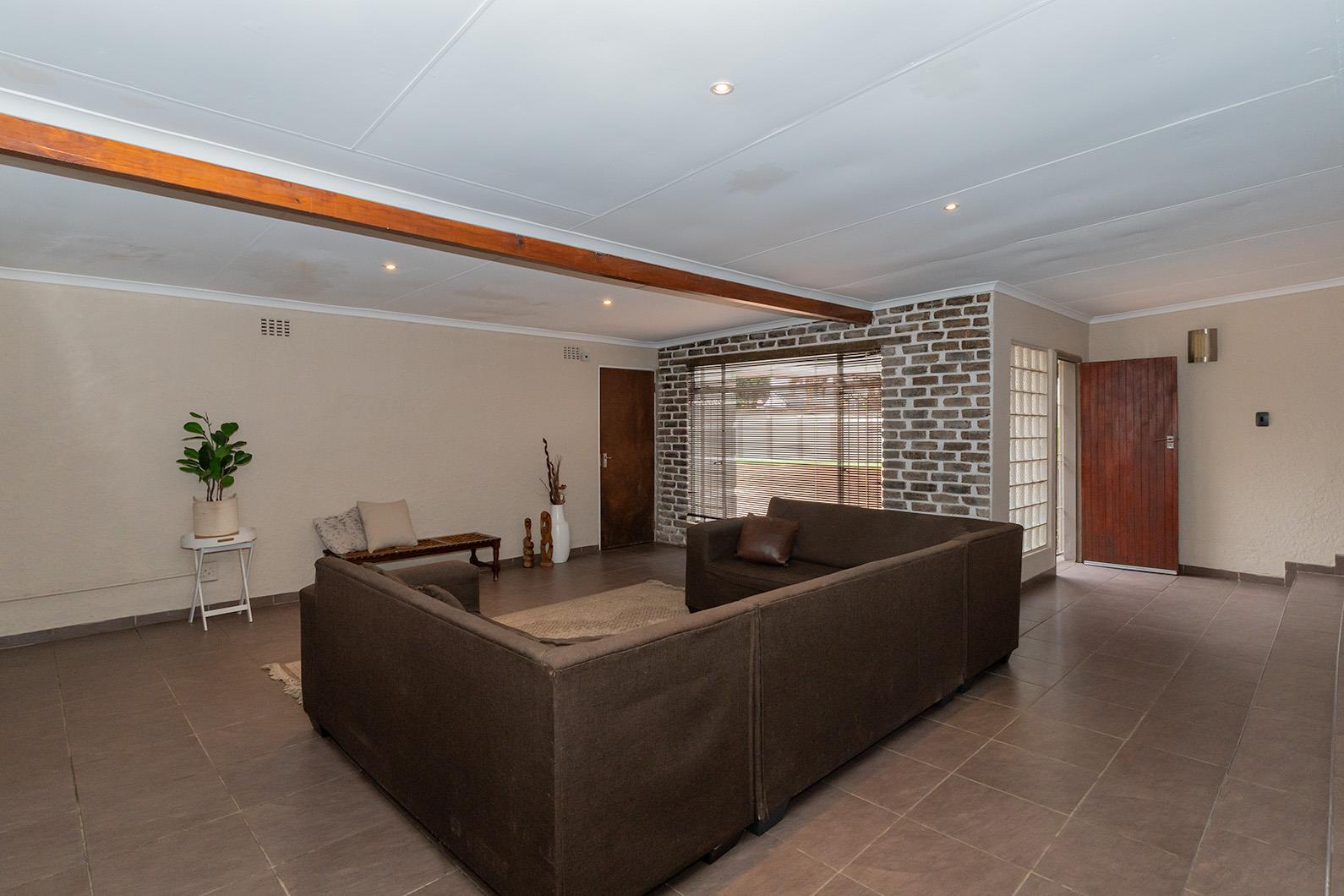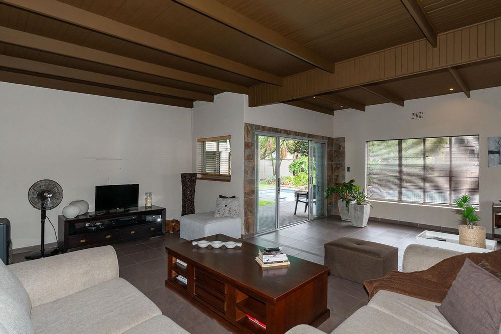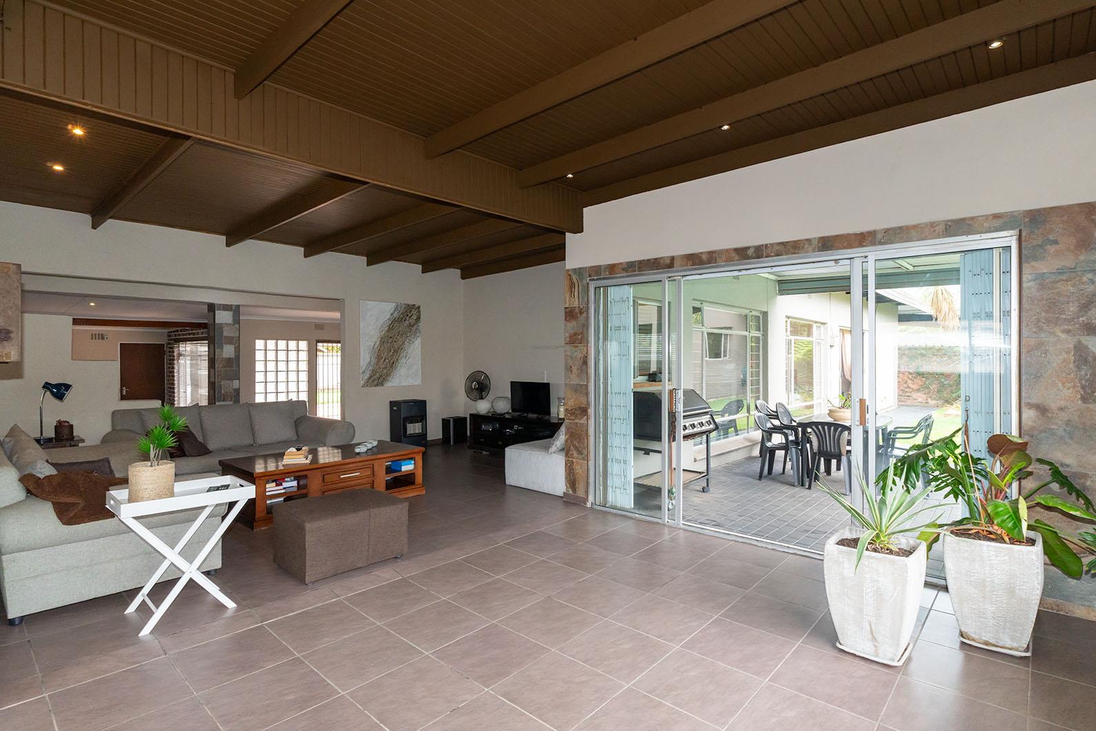 The open-concept living areas are both expansive and welcoming. The main lounge flows smoothly into a family room, ideal for relaxation, while the dining area, overlooking the manicured back garden, is the perfect space for gatherings.