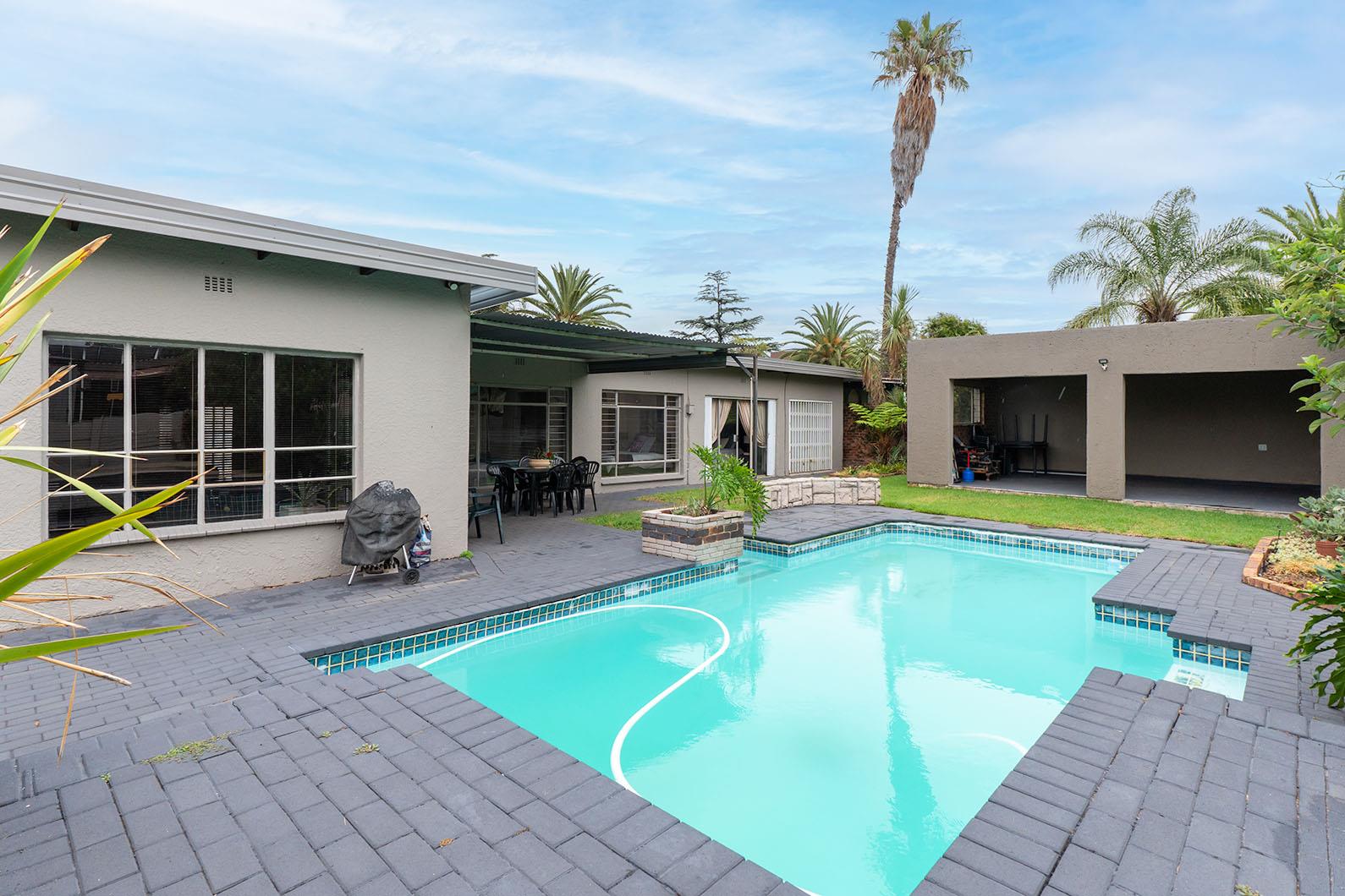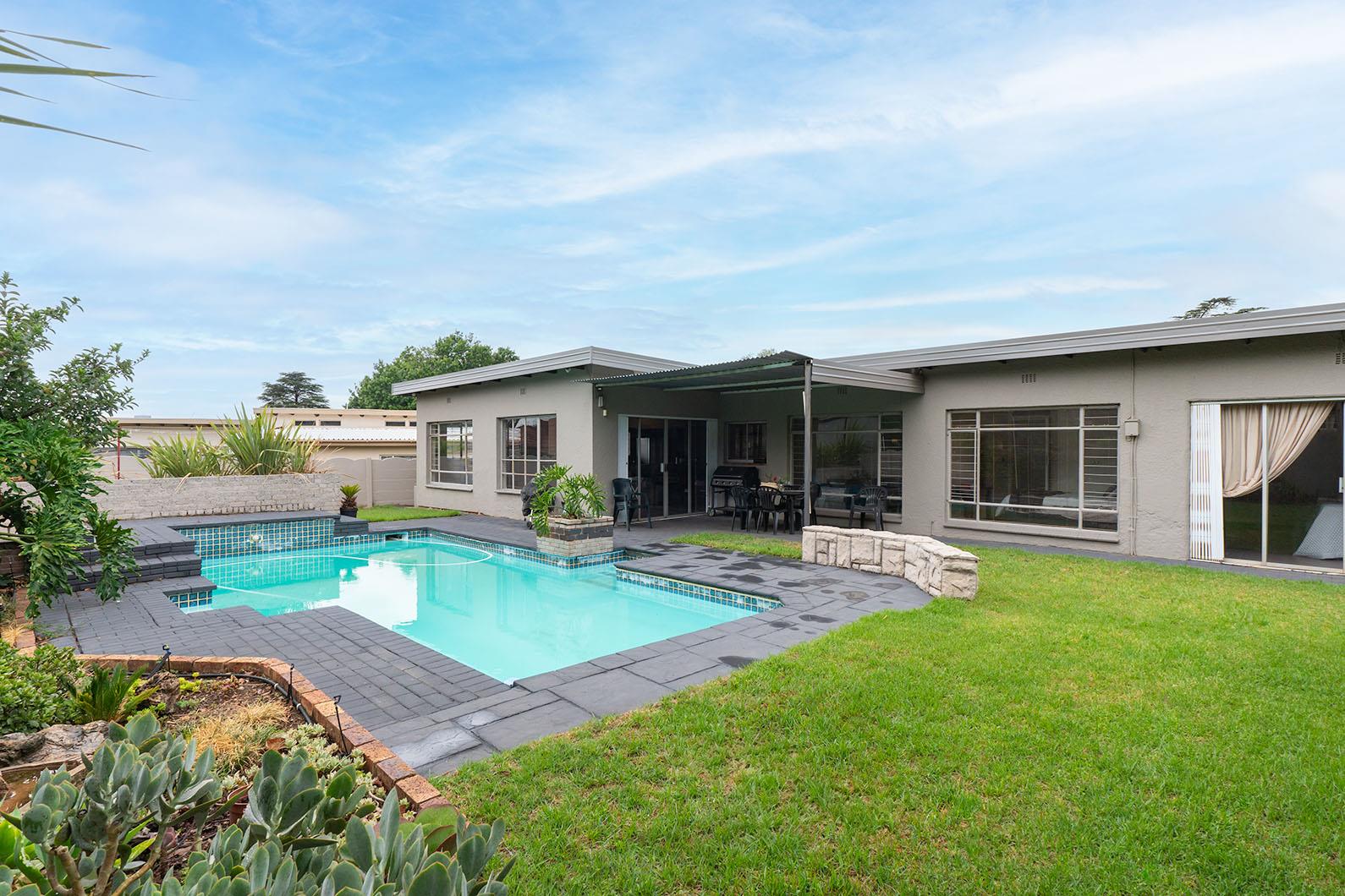 Inside, four generously sized bedrooms come complete with built-in cupboards, providing abundant storage and privacy for each family member. The main bedroom is a true sanctuary, featuring a spacious walk-in wardrobe, a private study nook, and access to the serene back garden and pool area. Its en suite bathroom offers a luxurious touch, complete with a corner bath, large shower, toilet, and basin, while a main bathroom with a bath, shower, basin, and toilet serves the other rooms.