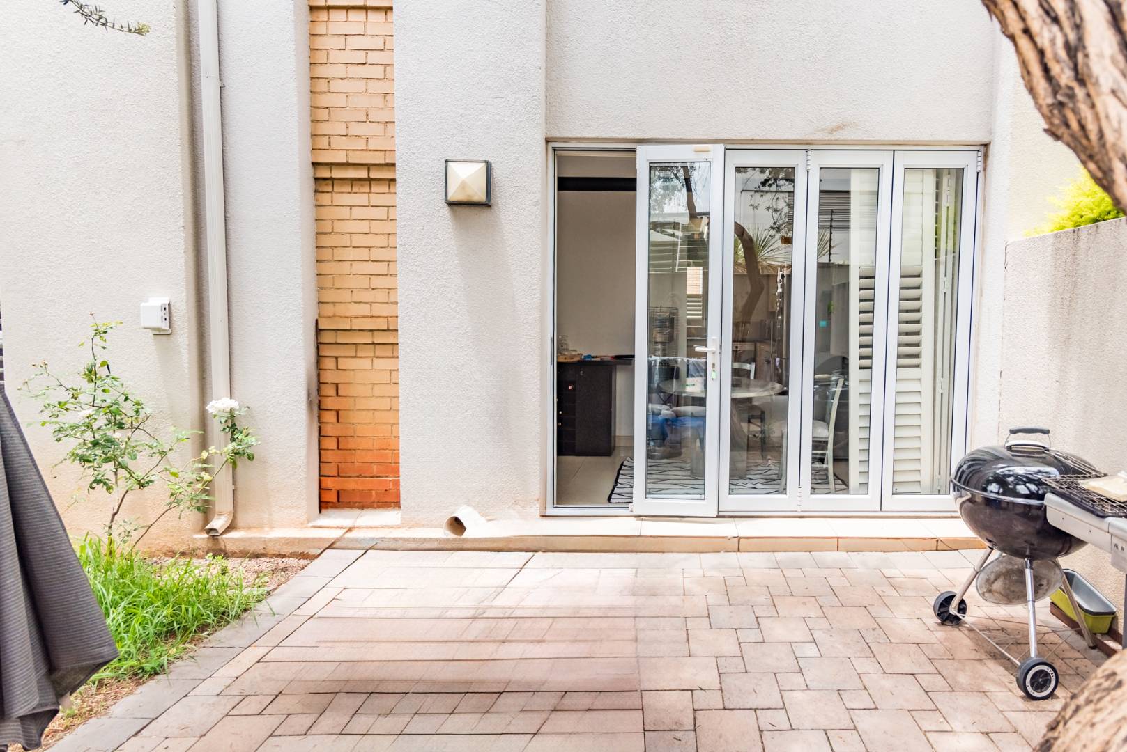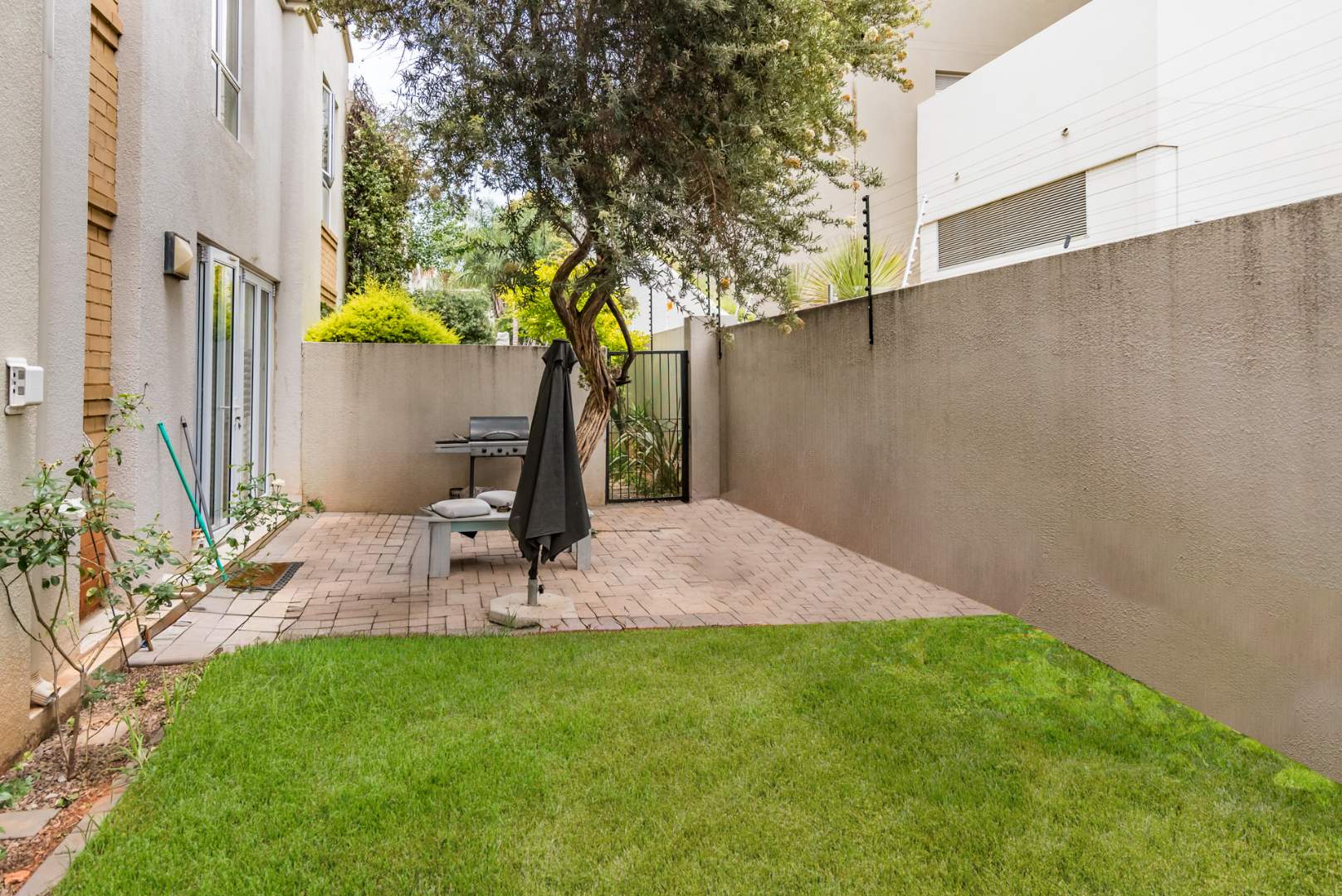 Aluminium stacking doors open onto your own low-maintenance private garden, ideal for relaxation or entertaining guests.