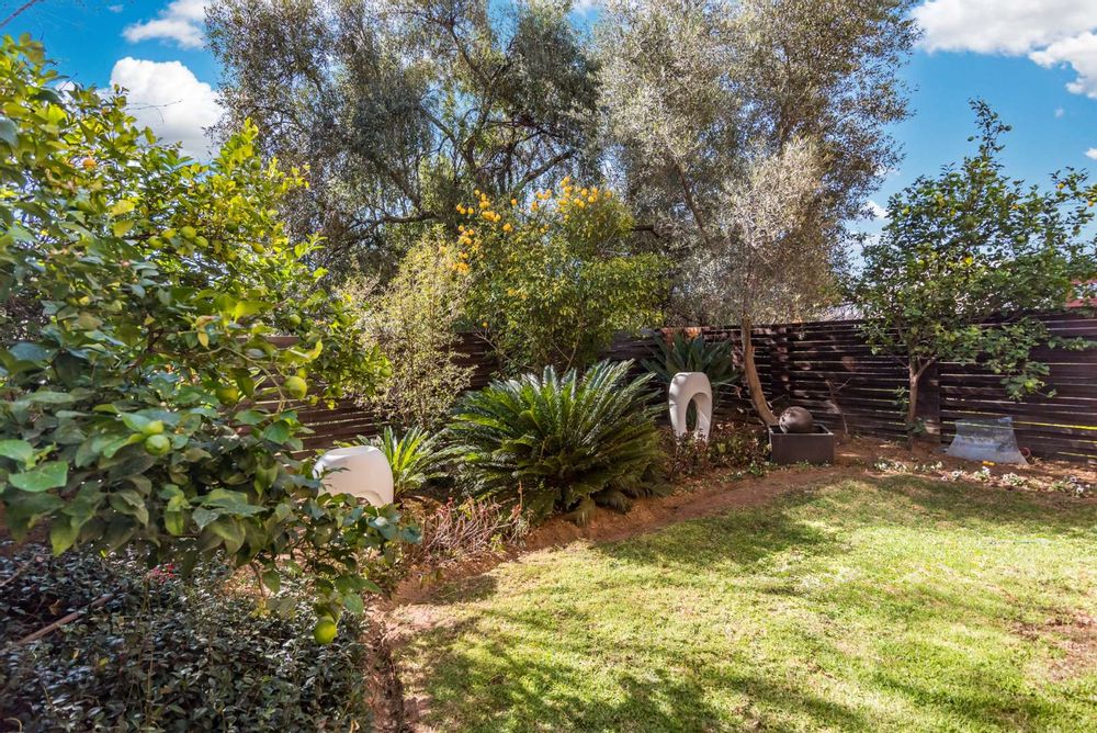 The lounge leads to a covered patio that opens onto a beautifully maintained private garden complete with lush plants and established greenery.