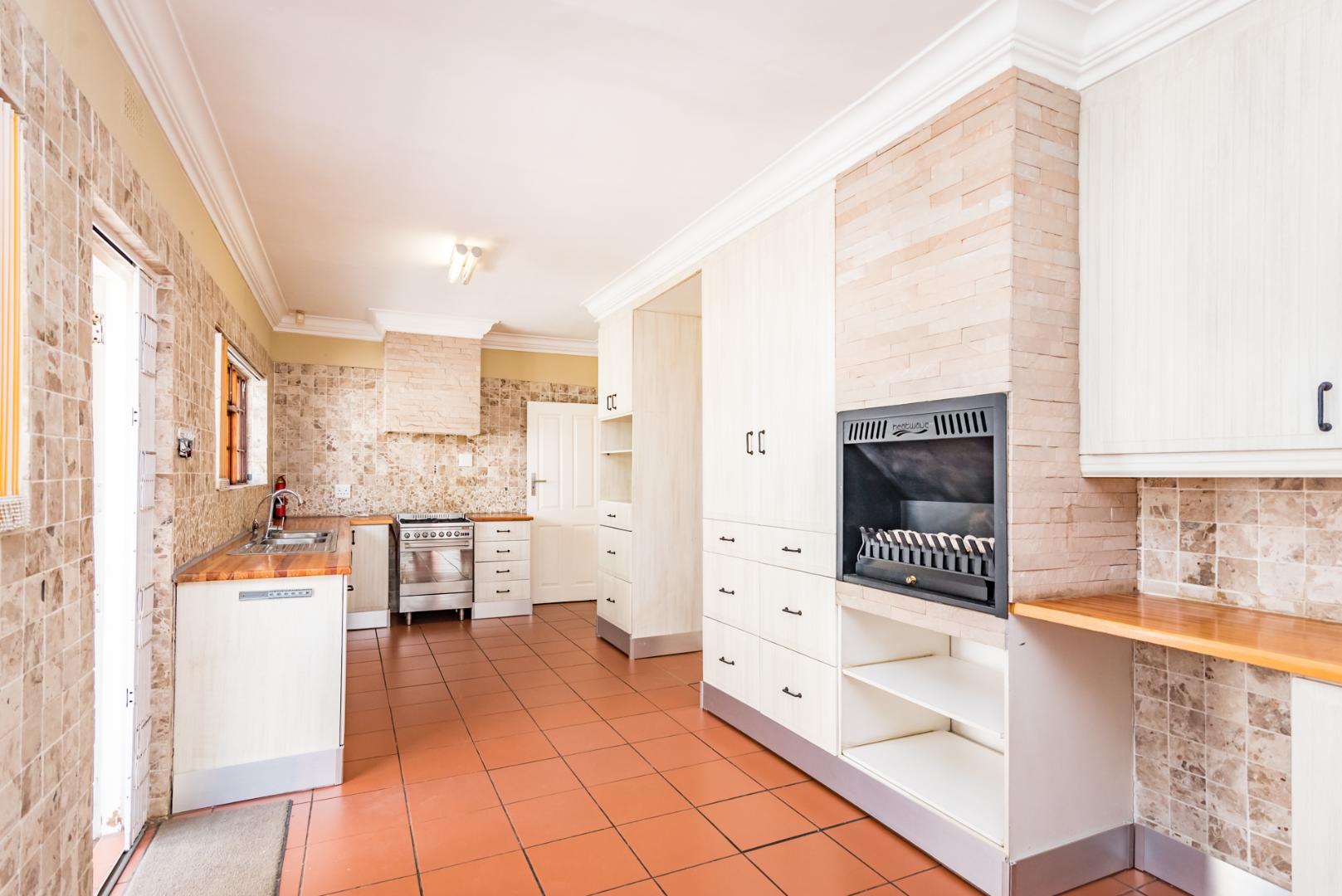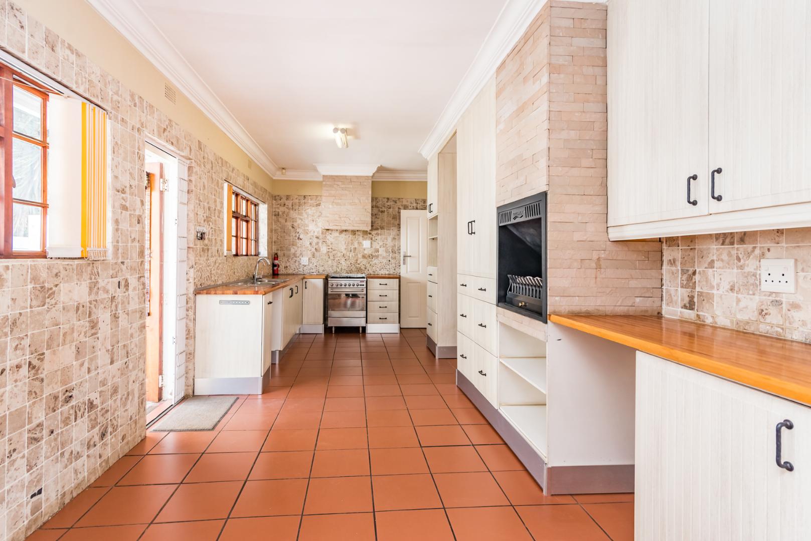 Spacious and stylish kitchen has ample cupboard space with a gas hob.